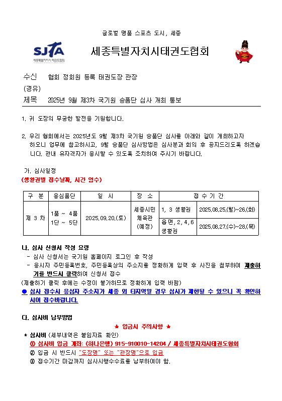 개최통보공문(2025년 9월 제3차 국기원 승품단 심사)수정.pdf