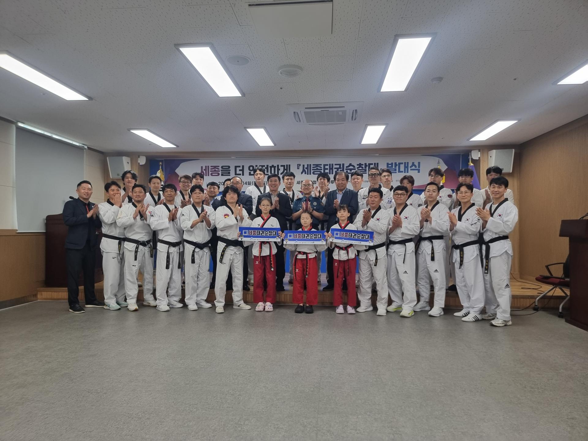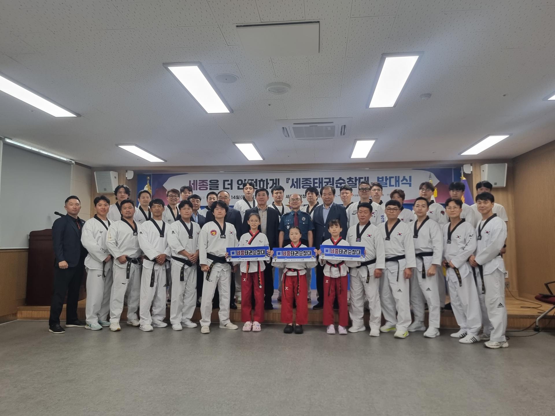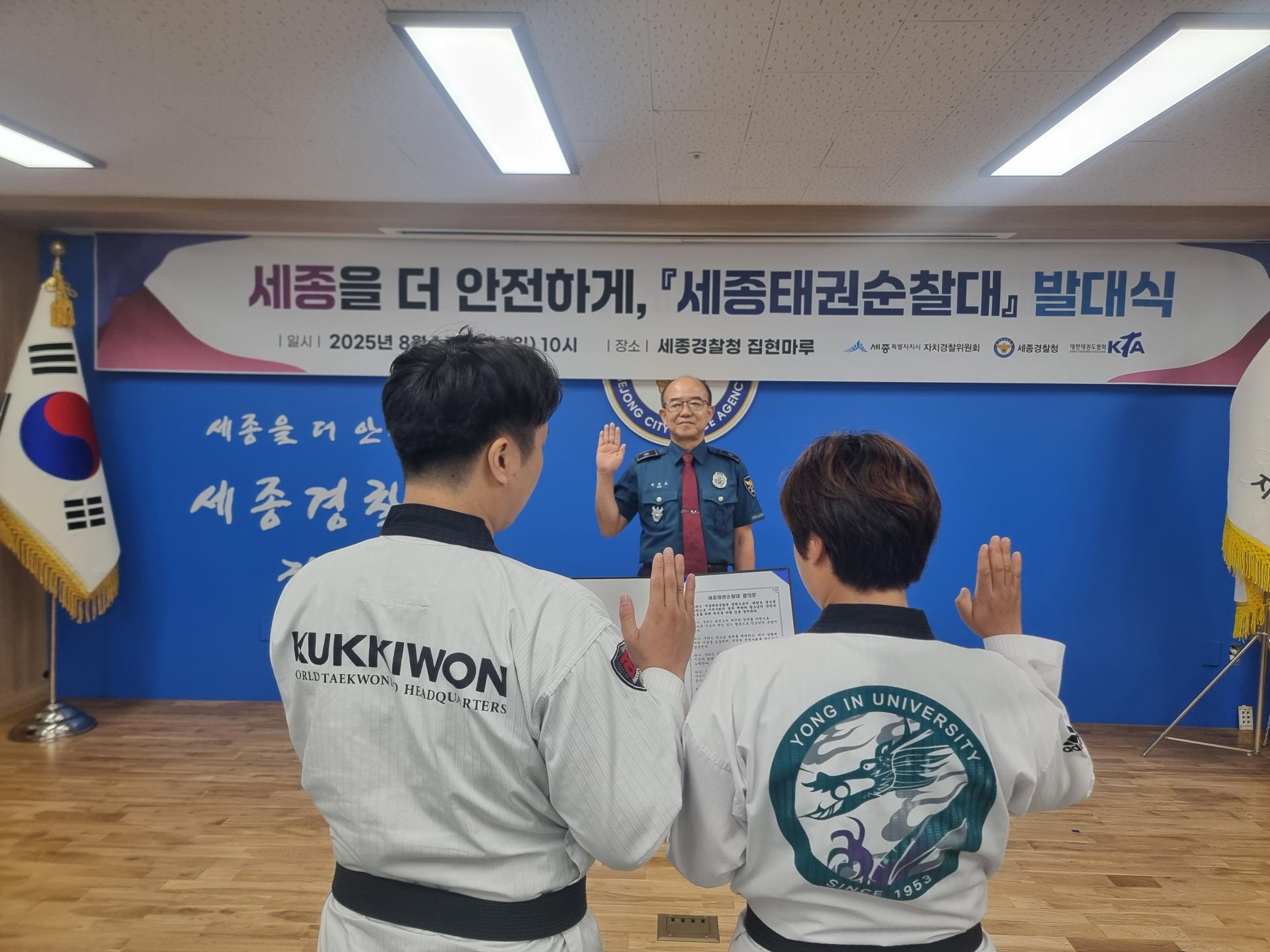 금일 세종시태권도협회, 세종시경찰청, 세종시자치경찰위원회가 공동 주관하는 ‘세종태권순찰대’ 발대식이 진행되었습니다.
